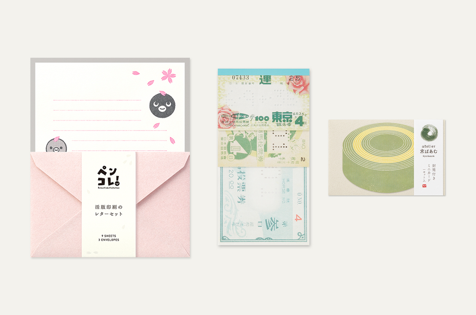 販売グッズとして、人気が高まっているのがレター類。女性がいくつも持っておきたくなるコミュニケーションアイテムです。昔ながらの印刷技法「活版印刷」のレターセットや、華やかな「箔押し」のぽち袋、サイズアソートが便利な一筆箋などをプロデュースしました。