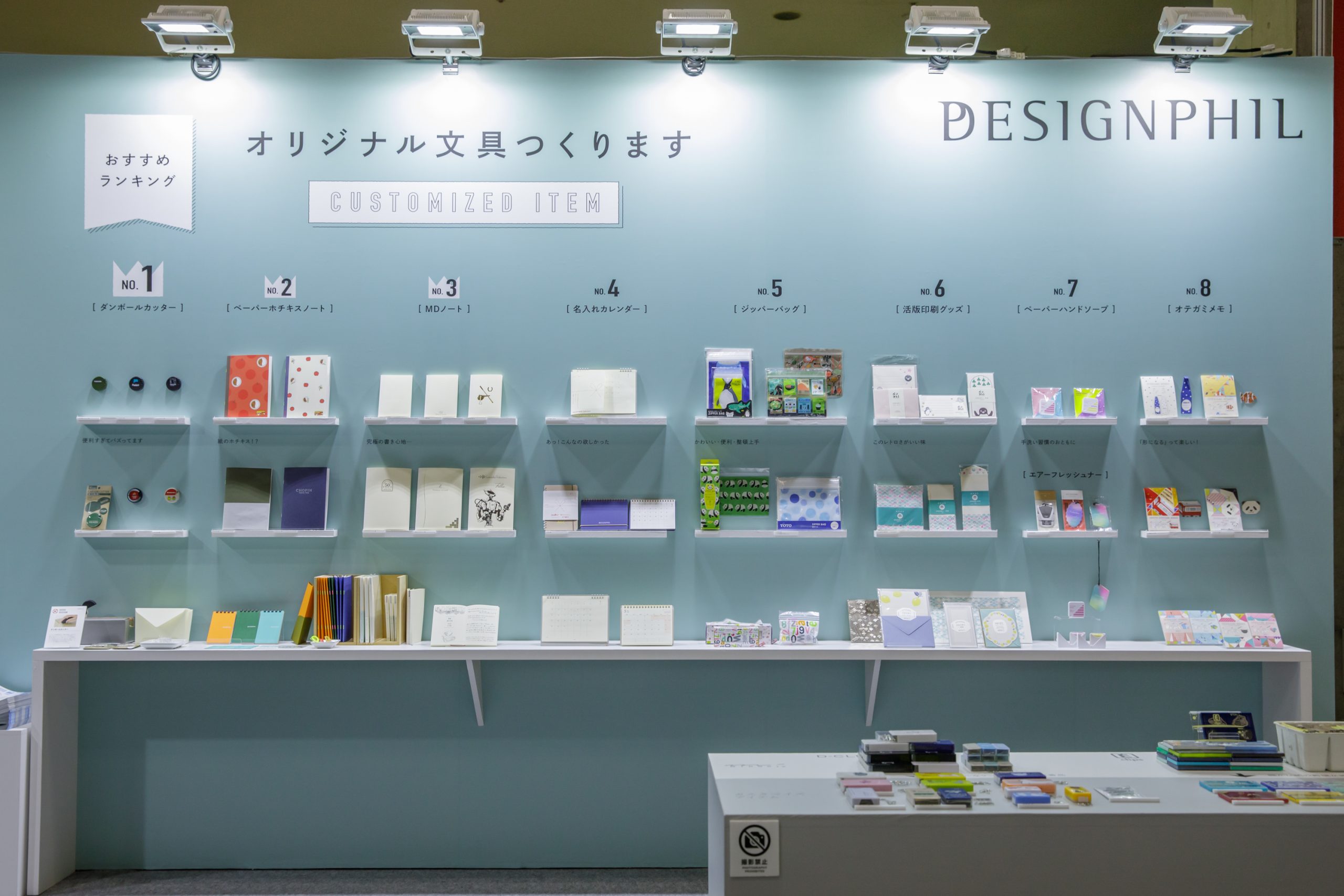 デザインフィルブースでは、定番人気のオリジナルクリップに加え、『ペーパーホチキスノート』『ダンボールカッター』『ジッパーバッグ』などの人気アイテムを、おすすめランキング形式でご紹介します。カスタマイズの事例もあわせて展示いたします。