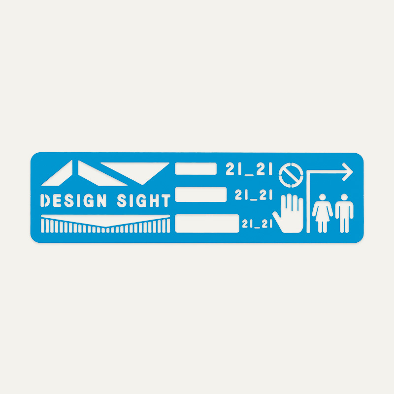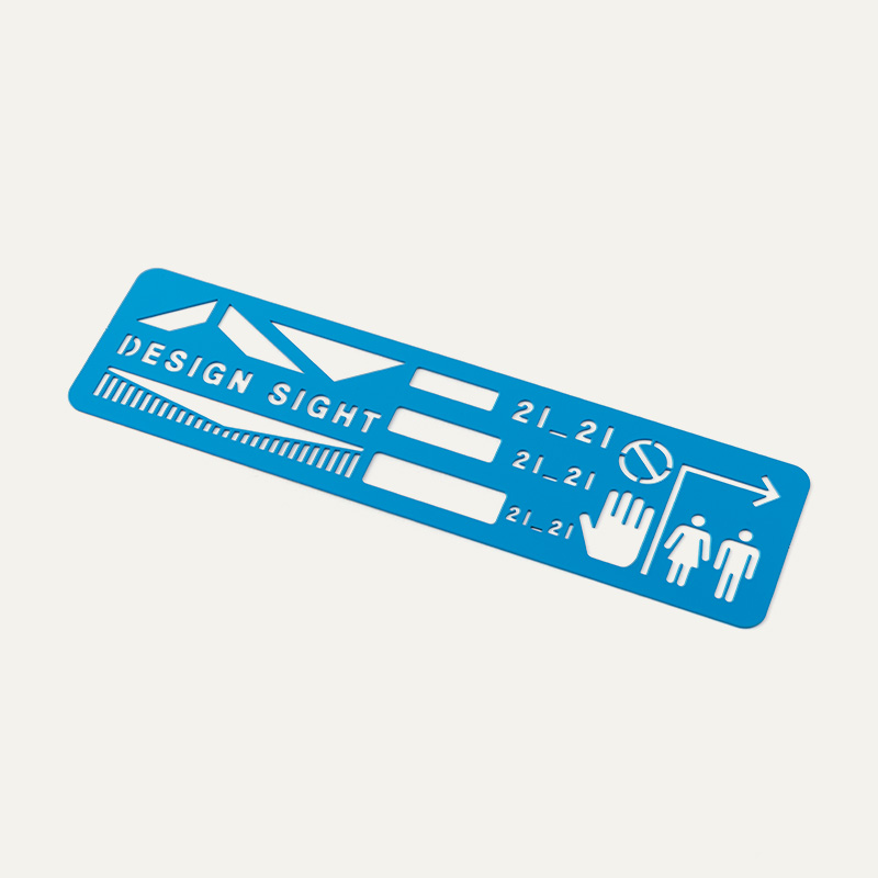 館内のサインや建物ロゴをデザインしたグラフィックプレート。21_21 DESIGN SIGHTらしい鮮やかなブルーが印象的です。