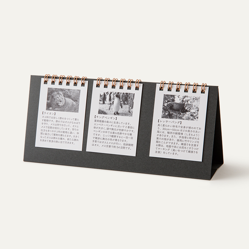 裏面には生体の写真と特徴を印刷しました。家に帰ったあとも、アドベンチャーワールドの動物たちを思い出して楽しんでいただくことができるグッズ。