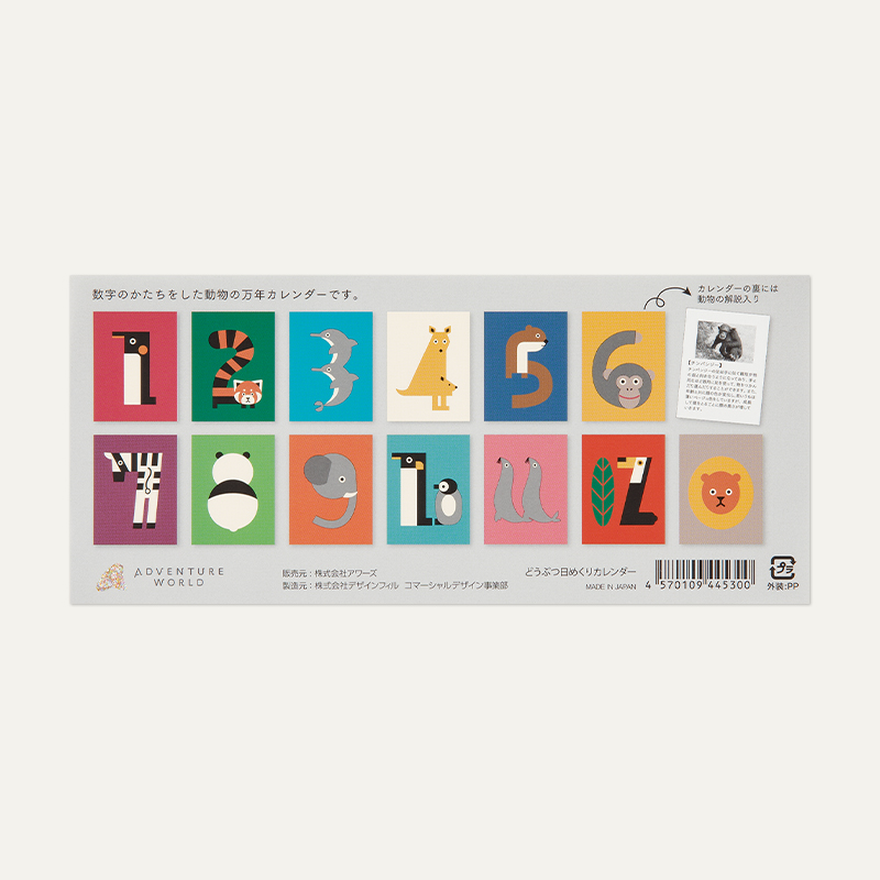 アドベンチャーワールドの動物たちが「0~9」までの数字に変身したデザイン。