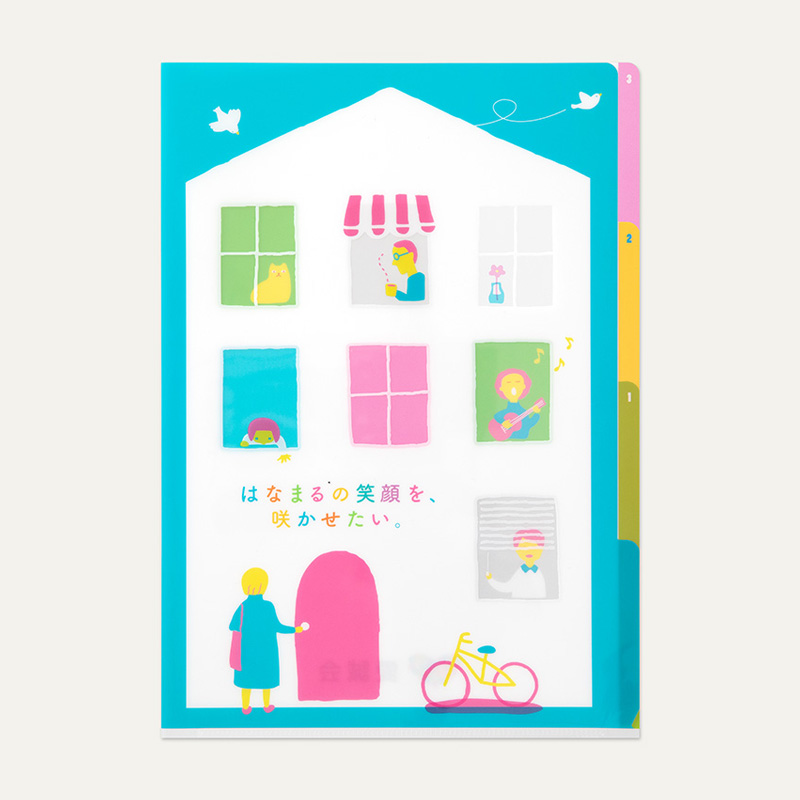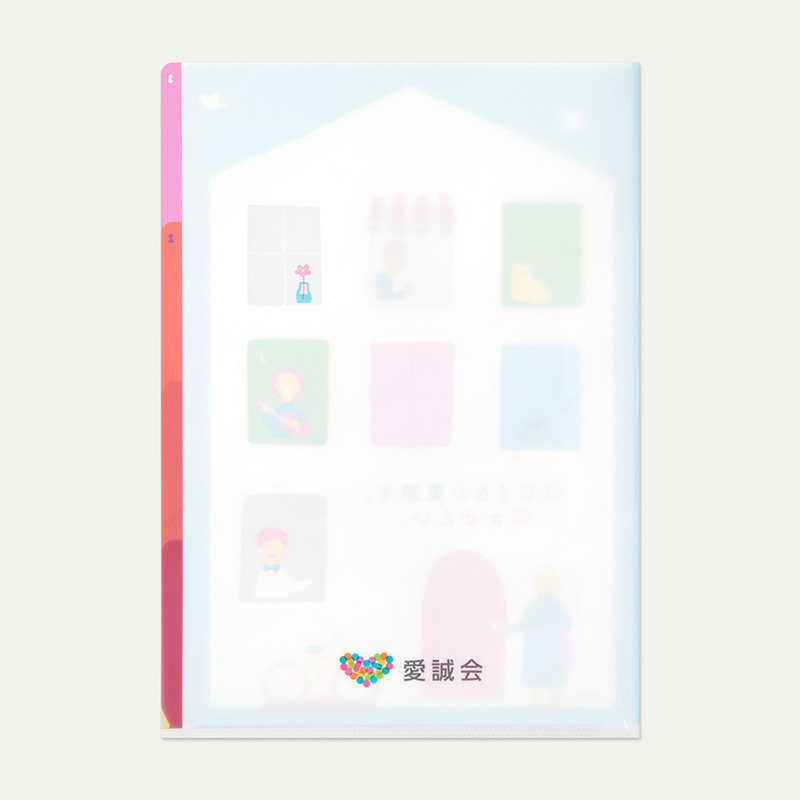 色鮮やかな愛誠会ロゴに合うトーンでファイル全体をデザインしました。