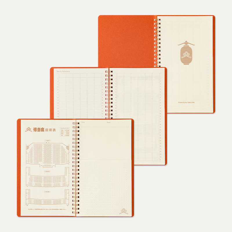 ノートの中紙には、年間カレンダーと博多座の座席表付き。