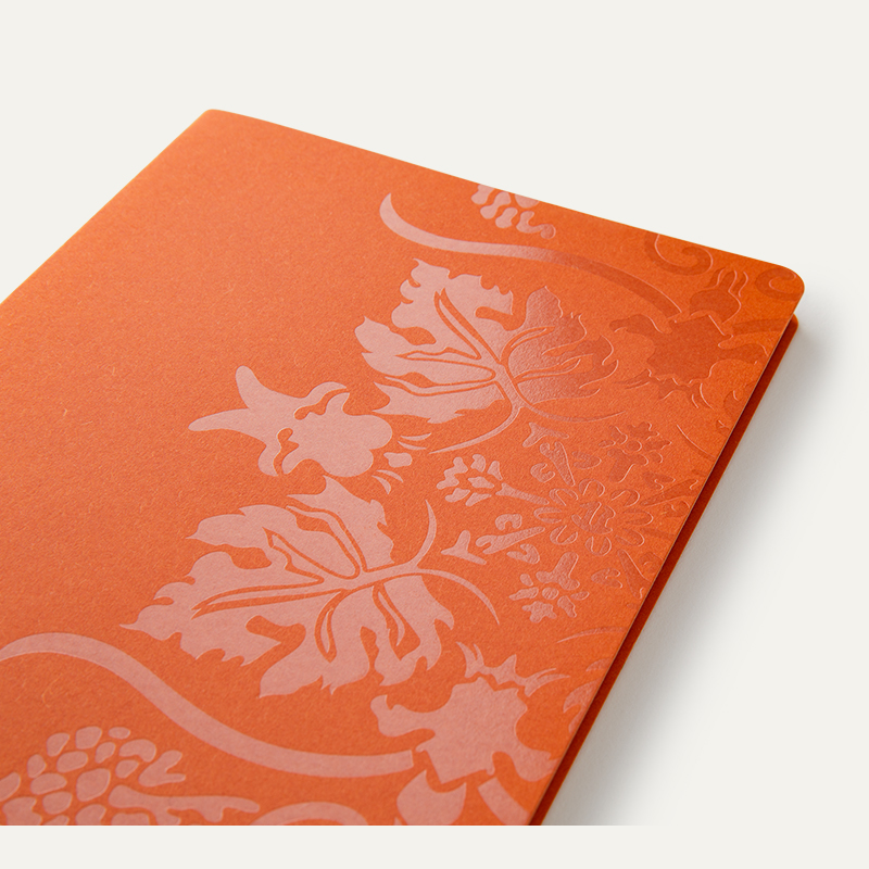 オレンジの華やかな表紙とさりげない透明箔がよいバランスです。
