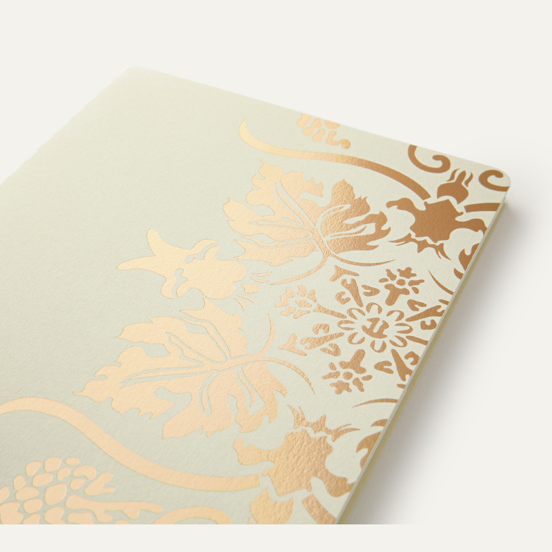 ホワイトの表紙に大胆にあしらわれた金箔が華やかです。