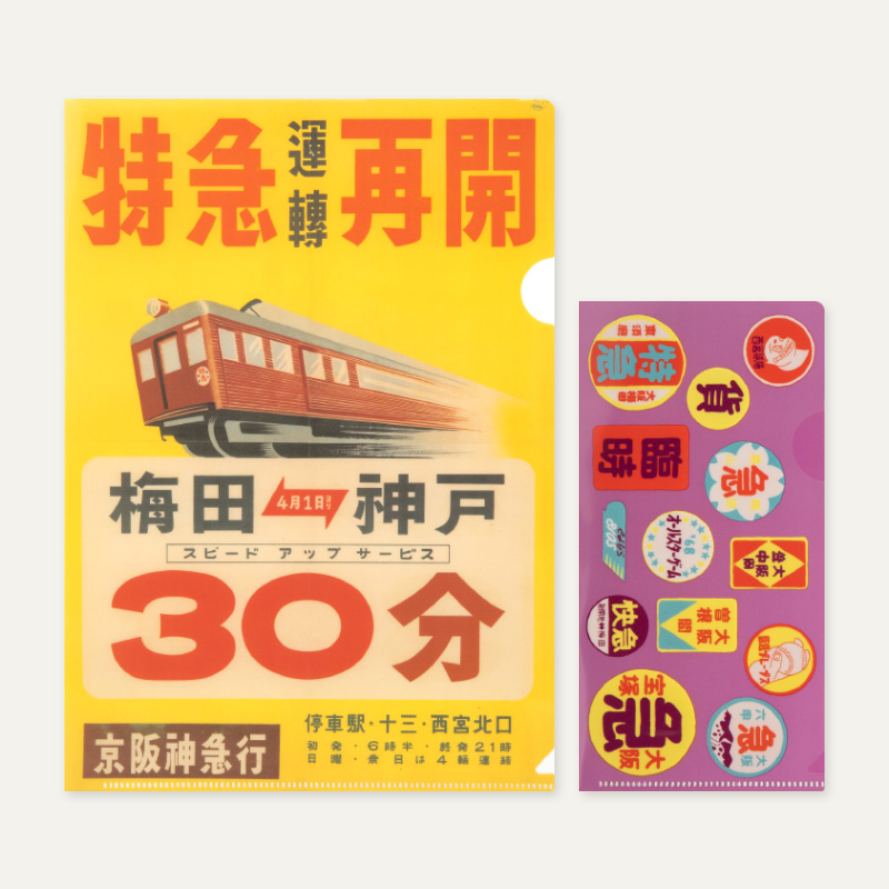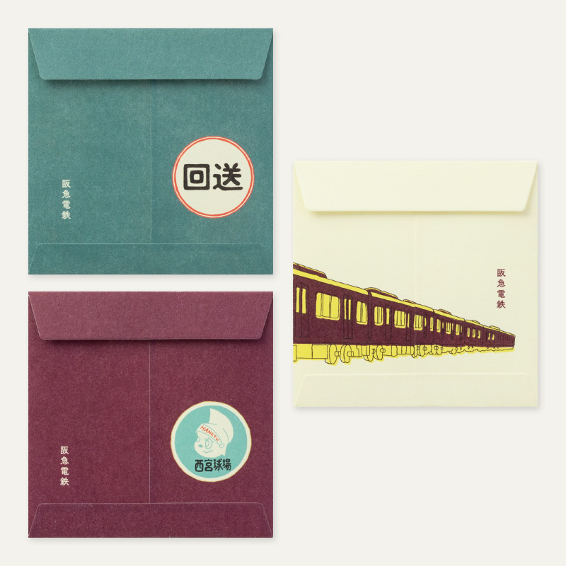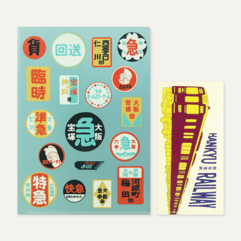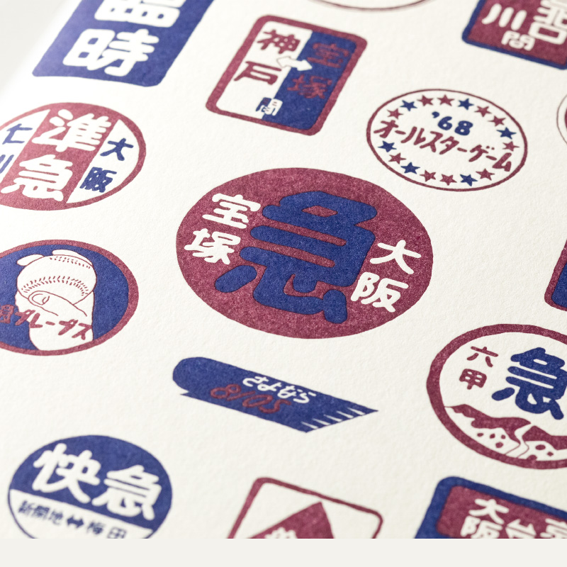 ポスター柄とヘッドマーク柄のセットです。ポスターは過去に阪急電鉄沿線に貼られていたポスターをそのまま再現しています。