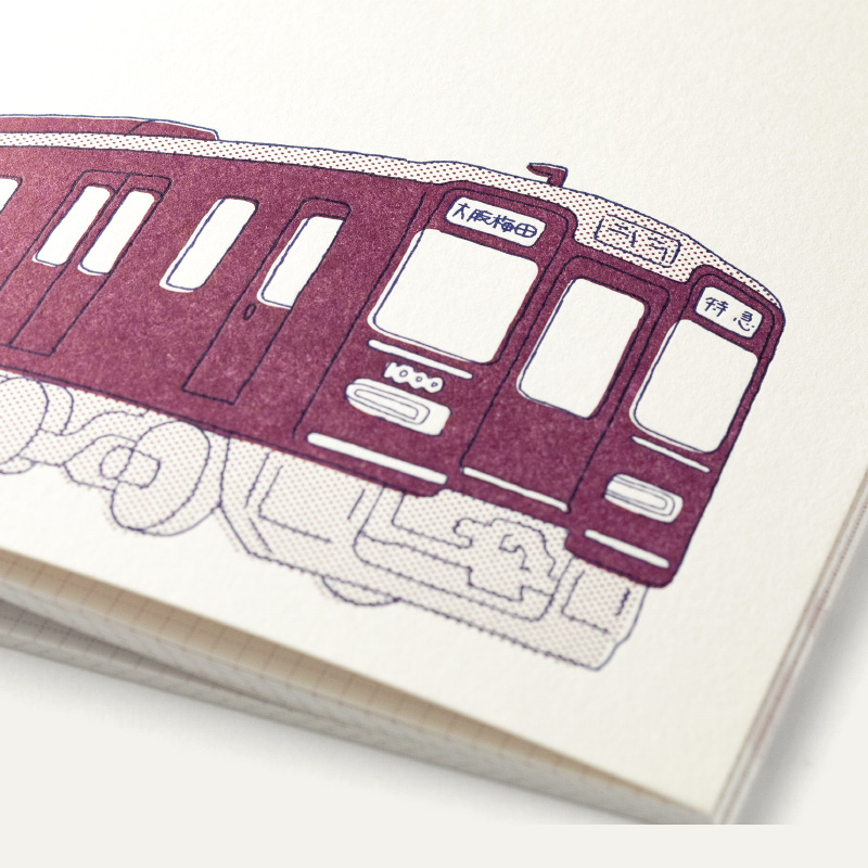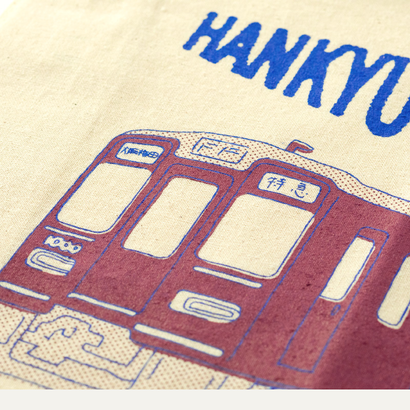 "レトロ可愛い"をテーマに、阪急電車のグッズシリーズを製作しました。おなじみのマルーン(えんじ)色が印象的。ヘッドマークはレトロな雰囲気に合わせ、遊び心のあるカラーリングになっています。