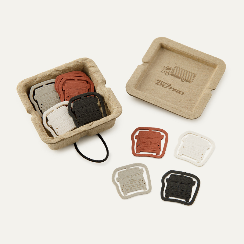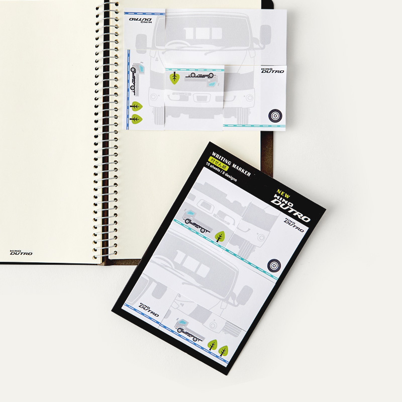 TVCMなどで有名な小型トラックDUTROをはじめとしたトラックをモチーフに、日野自動車様の全国の販社様でお配りするセールスプロモーションアイテムを製作いたしました。