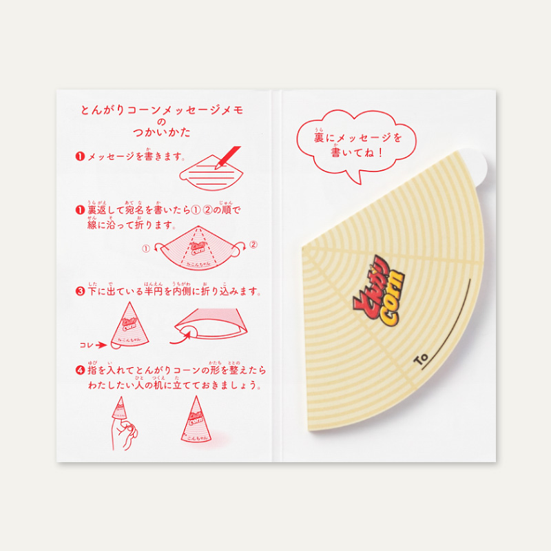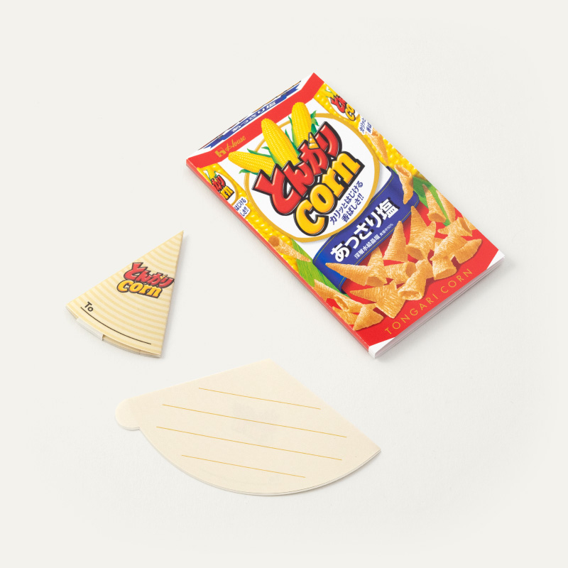 リモート工場見学にご参加の小学生向けノベルティとして、「とんがりコーン」をミニチュアにしたようなメモを製作しました。