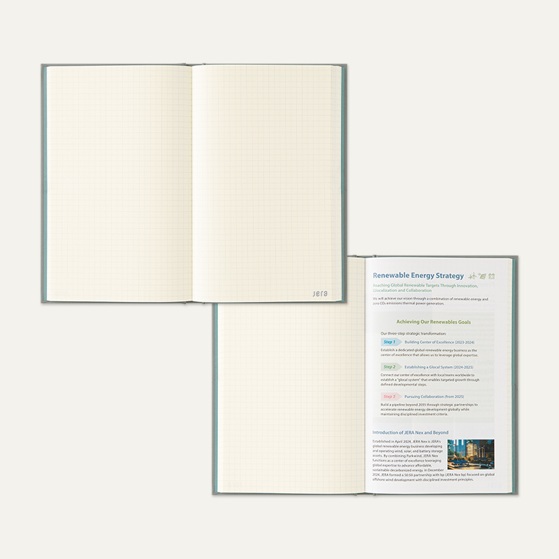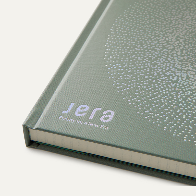 JERA様の設立10周年記念のノベルティとして、ハードカバーノートを作成いたしました。