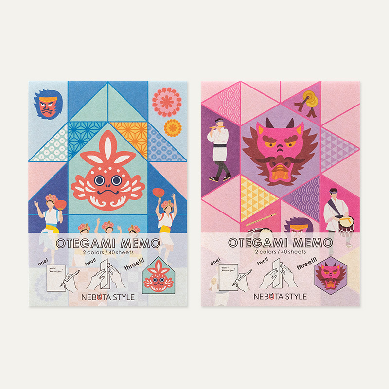 メッセージを書いて、かわいい形に折ることができます。金魚ネブタと龍の2柄をデザインしました。