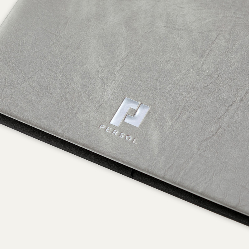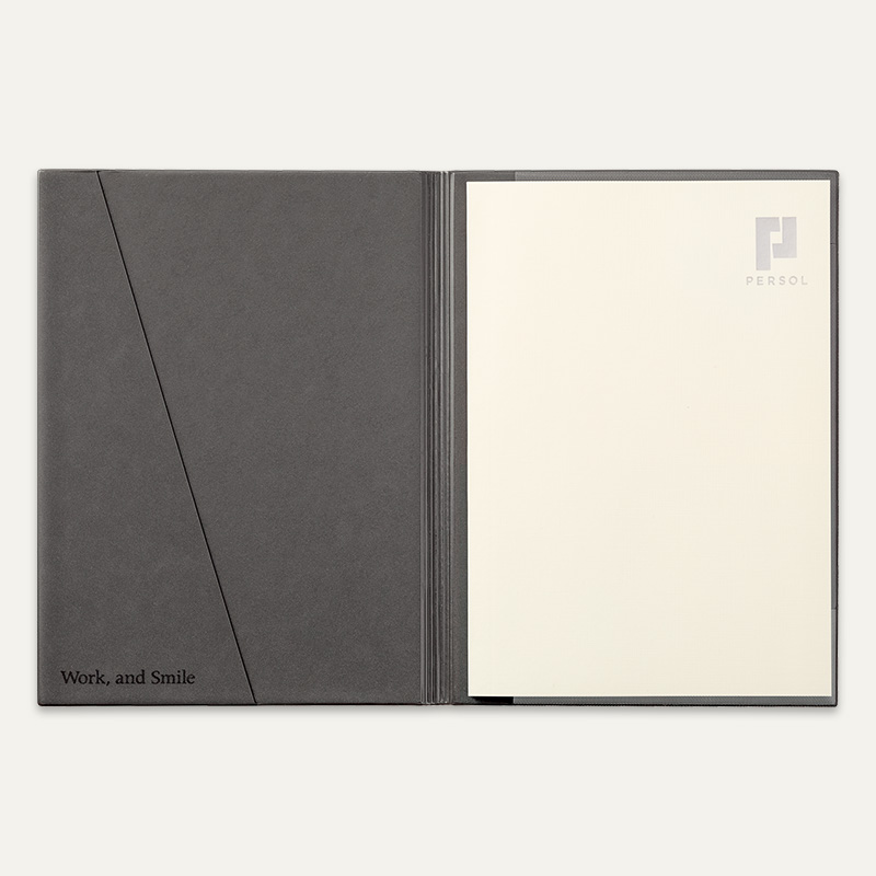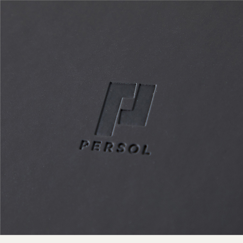 老若男女問わず、幅広いビジネスシーンで気軽にお使いいただけるよう、ロゴをあえて主張しないモノグラムデザインにし、カラーはダークグレーを採用いたしました。