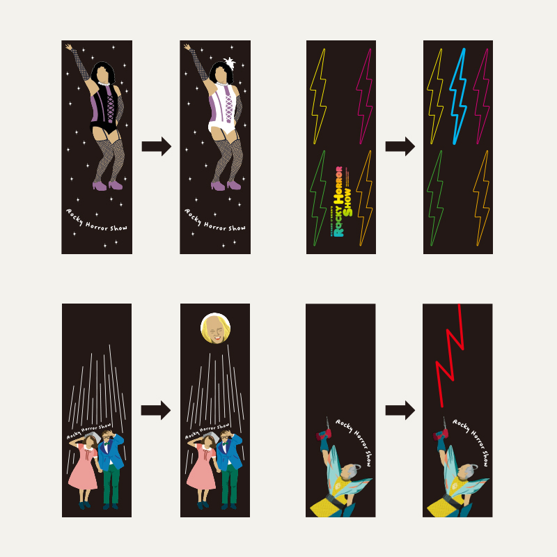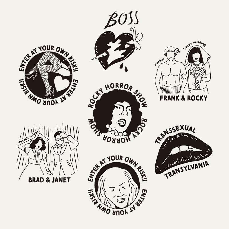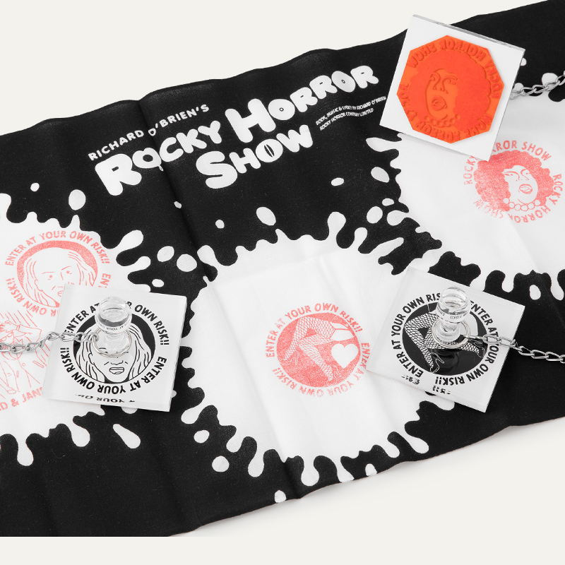 【PARCO劇場様 事例】2022年1月に行われた舞台「ロッキー・ホラー・ショー」のオリジナルグッズを製作しました。それぞれのアイテムに作品のシーンやモチーフを活かし楽しいデザインに仕上げました。