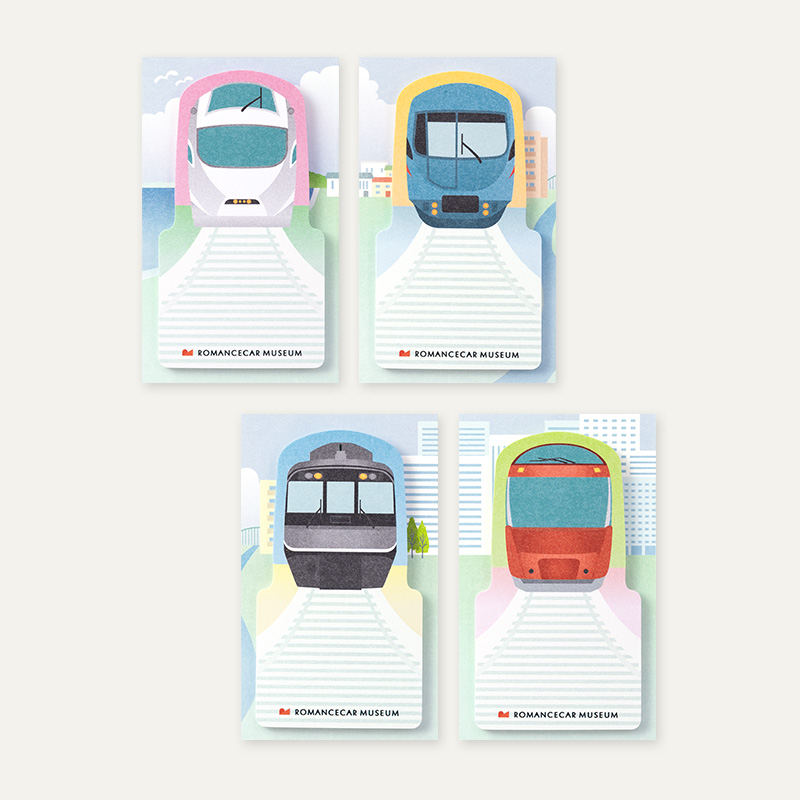 ロマンスカーミュージアムのショップで販売される、現役車両4車種セットのメモ付せんを製作しました。
