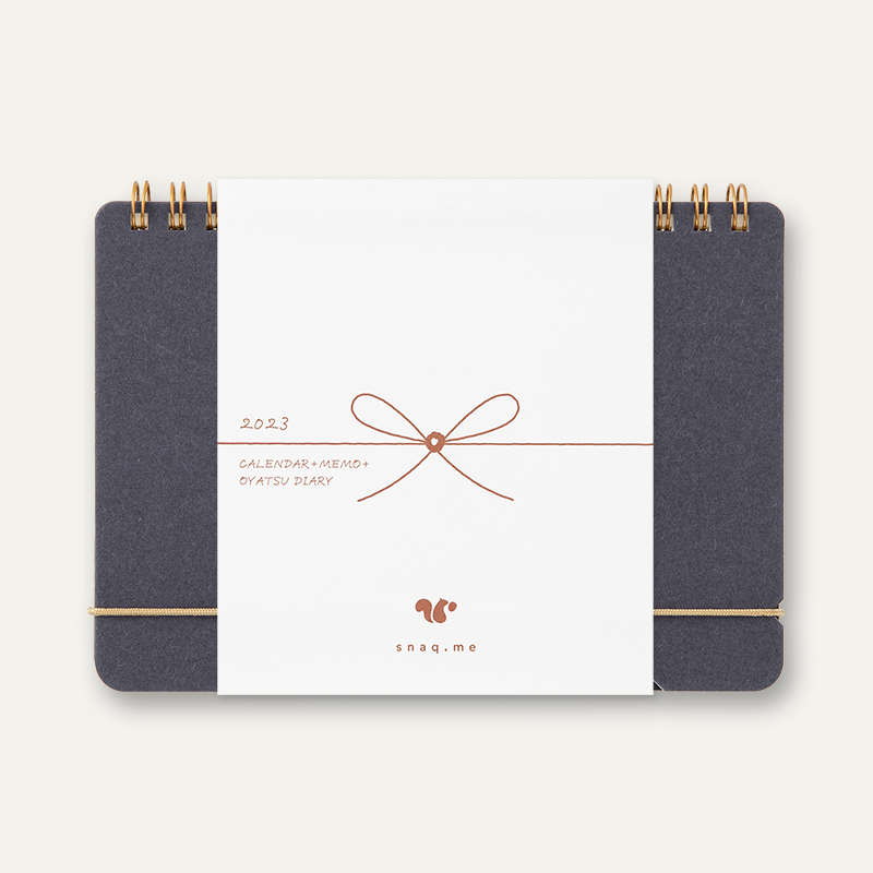 表紙はおやつBOX(定期便の箱)をイメージして、ナチュラルで優しい風合い。ゴムひもで表紙を束ねることで持ち運びがしやすくなっています。