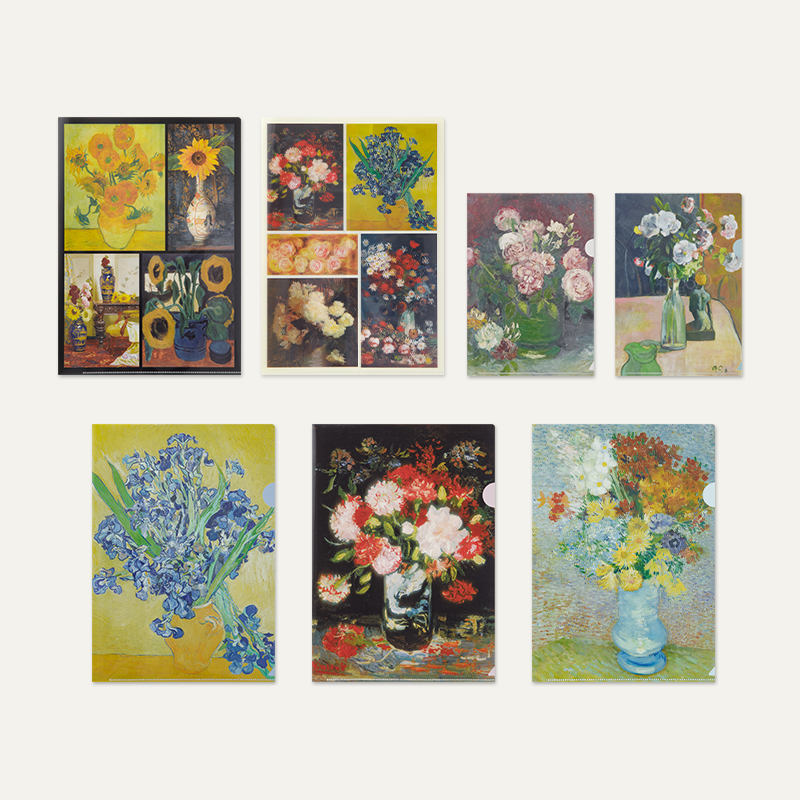 【ゴッホと静物画 伝統から革新へ展 事例】「ゴッホと静物画 伝統から革新へ」展に合わせ、SOMPO美術館様のスーベニアグッズを製作しました。作品をさまざまなアイテムに落とし込み、家に帰ってからも展示を振り返ることのできる、美しいデザインに仕上げています。