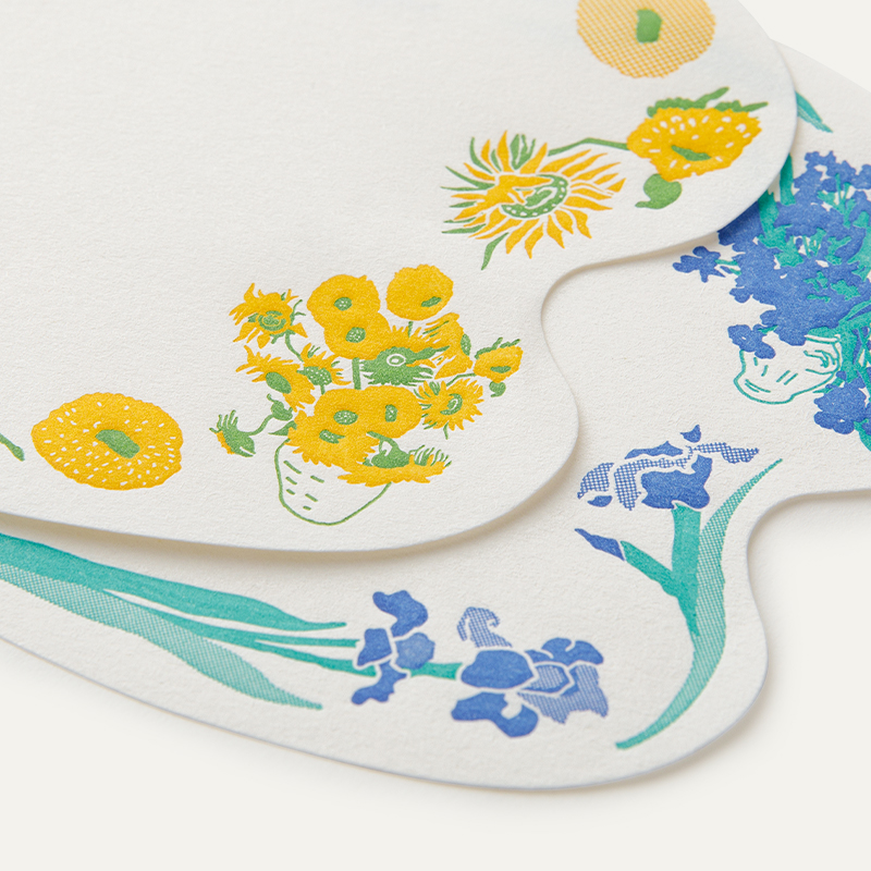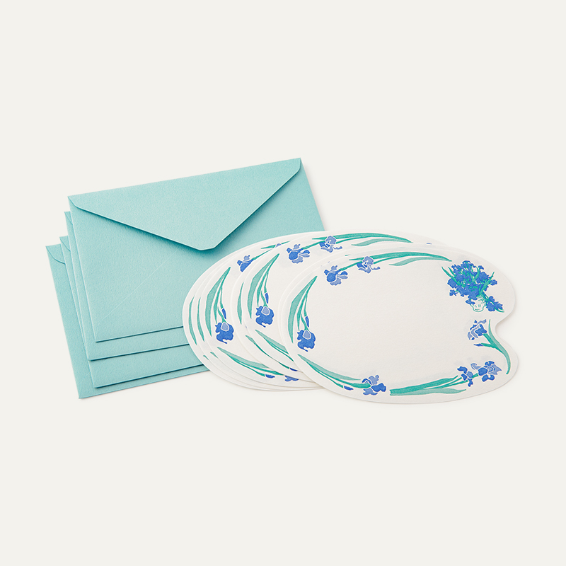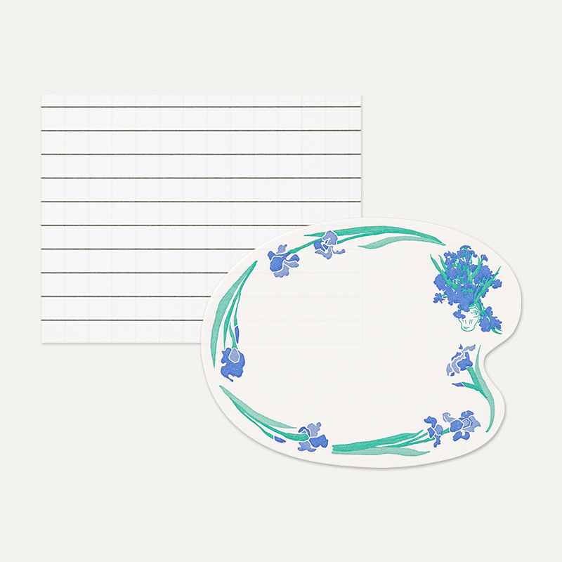 便箋はアイリスをイラストでデザインし、絵の具のパレットをイメージしたダイカットに。