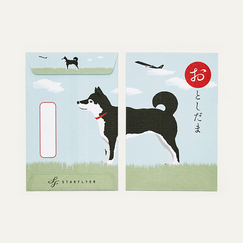 スターフライヤーの機体をイメージしたぽち袋です。特徴的な「尾翼」部分にフォーカスし、デザインしました。もう1柄は犬の尻尾をデザインしました。
