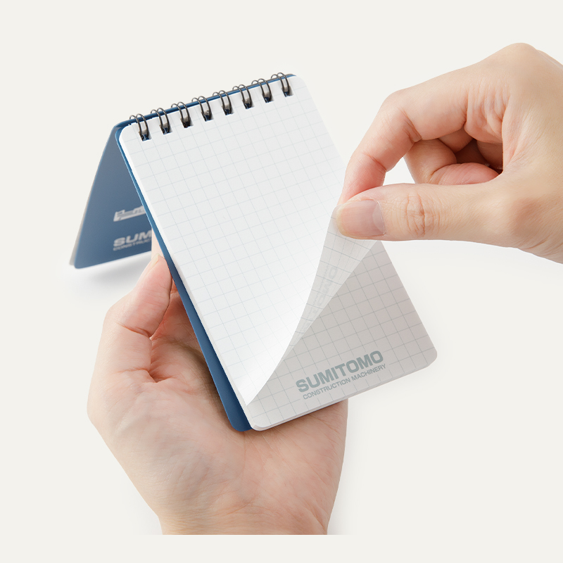 水に強いPP製の表紙は、屋外の現場で作業される方にぴったり。ネイビーの表紙に銀箔で上品に仕上げています。