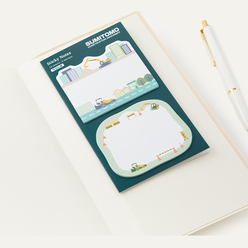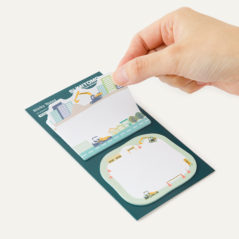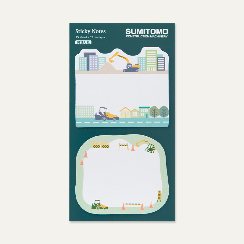 デザインフィルのアイデア製品である『パッとメモ』をベースに、2種の建設機械(油圧ショベル・道路舗装機)をデザインしました。