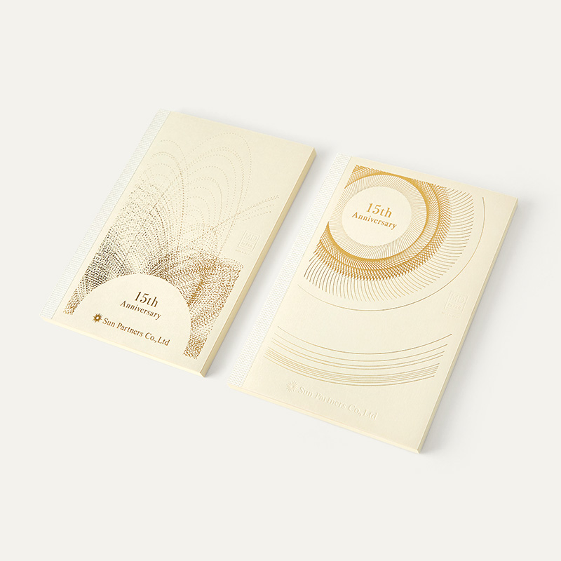 ビジョンブックと合わせてクライアント様に配布する年末年始ご挨拶用ノベルティとして、表紙の金箔押しが美しいノートお作りしました。