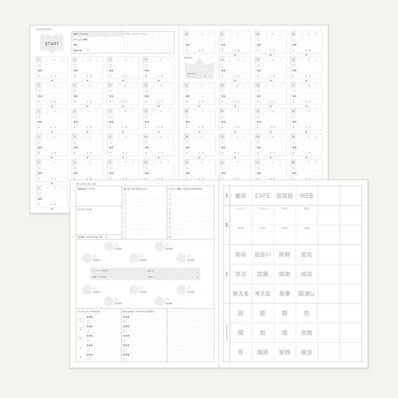 読書量を増やす、新しい自分と出会う、など”10の目的”をかなえるための、13種類のフォーマットを備えています。