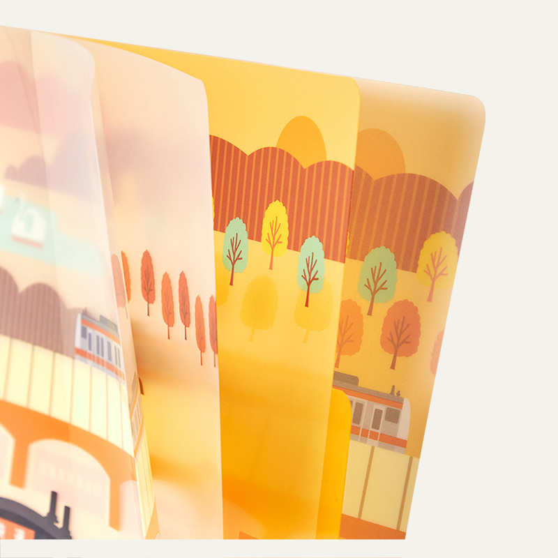 各レイヤーに印刷が施されているため、紙を入れるポケットによって、それぞれ異なったデザインが浮かび上がります。