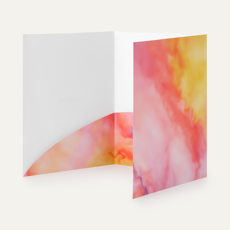 紙製のファイルをお作りしました。ブランドプロミスを効果的に表現できるよう、発色の良い用紙を使用しています。