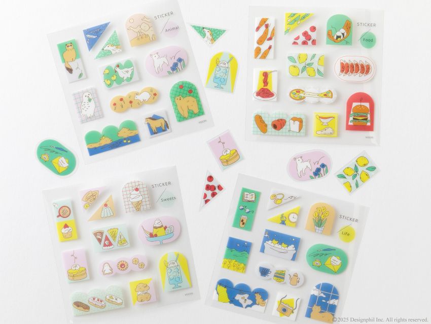 ノートや自分の持ち物をデコレーションできるクリア素材のシールです。日常やお出かけの中にある、ワクワクするモチーフをテーマに描きました。鮮やかなカラーで、貼るだけで気分が上がるデザインです。機械のレバーを回すと、4種類のシールがランダムで出てくる楽しい仕掛けをご用意しました。どのデザインが出るか楽しみながら、ぜひ体験してみてください。