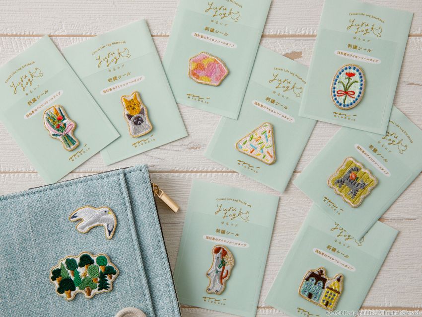 また、ノートのモチーフをあしらった『ゆるログ 刺繍シール』も販売します。「ゆるログ」専用の『ファスナーポーチ ノートカバー』や、お気に入りの小物に貼って楽しむことができます。