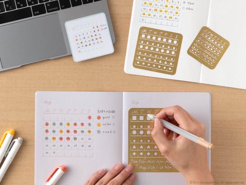 「文具女子アワード」は、“商品にときめく!商品を使ってみたくなる!”をテーマにした、文具好きによる投票型アワードです。「ミドリ」では、ノートや手帳に月間カレンダーが簡単に書ける『カレンダーテンプレート』をエントリーしています。裏面には滑り止め加工が付いているため、なぞっている際にずれる心配がなく、手帳やノートづくりをスマートにサポートするアイテムです。
