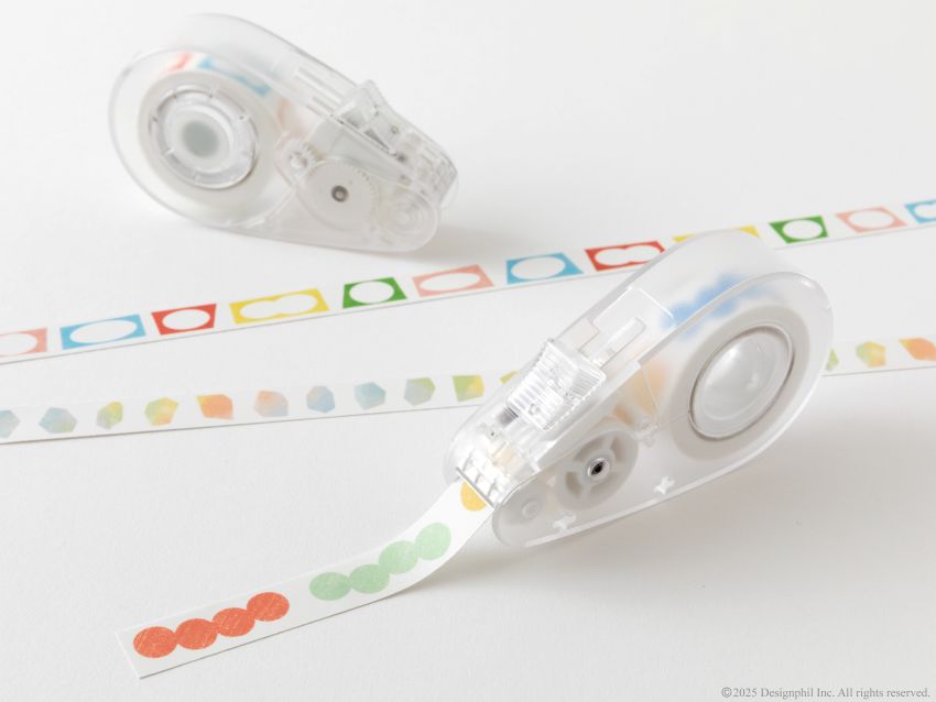 マスキングテープを同じ長さでキレイにカットできる『クイックテープカッター』の透明デザインが登場。水性ペンで書けるオリジナルマスキングテープがセットになっています。マスキングテープは、日付やタイトルが書けるカラフルなフレーム柄、淡く輝く宝石をイメージしたパターン柄、手書きの風合いのあるポップなドット柄の全3柄です。手帳やノートのデコレーションにはもちろん、ラッピングやキッチンでの日付管理、封留めなど、さまざまなシーンでお使いいただけます。