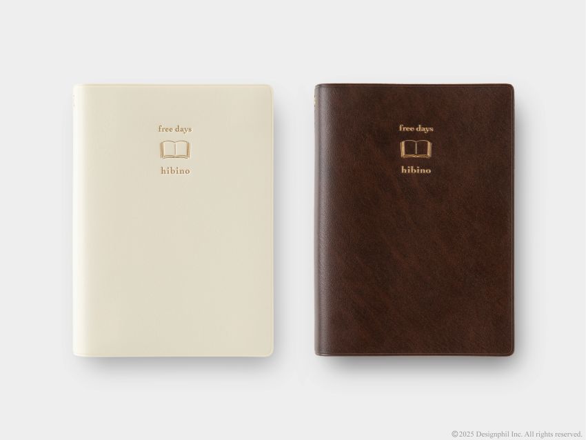 表紙カラーには、本文に使用している紙色をイメージした「アイボリー」と、『hibino』の見返しに採用しているブラウンの用紙をイメージした「茶色」を採用。長く使えて飽きのこない色味はさまざまなスタイルになじみます。