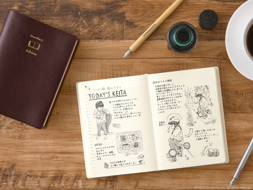 「1日2ページ」のたっぷりと書き込めるフォーマットが魅力的な『hibino』を、日付フリーにすることで、書かない日も、たくさん書く日も、より自由に受け止められる『hibino フリーダイアリー』として開発しました。